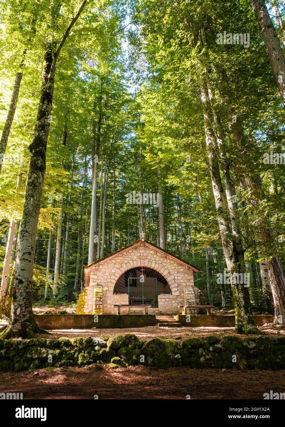 Chapel Pierre Castel Surrounded By Beech Trees In The Forest At Vizzavona In Corsica Stock Photo Alamy